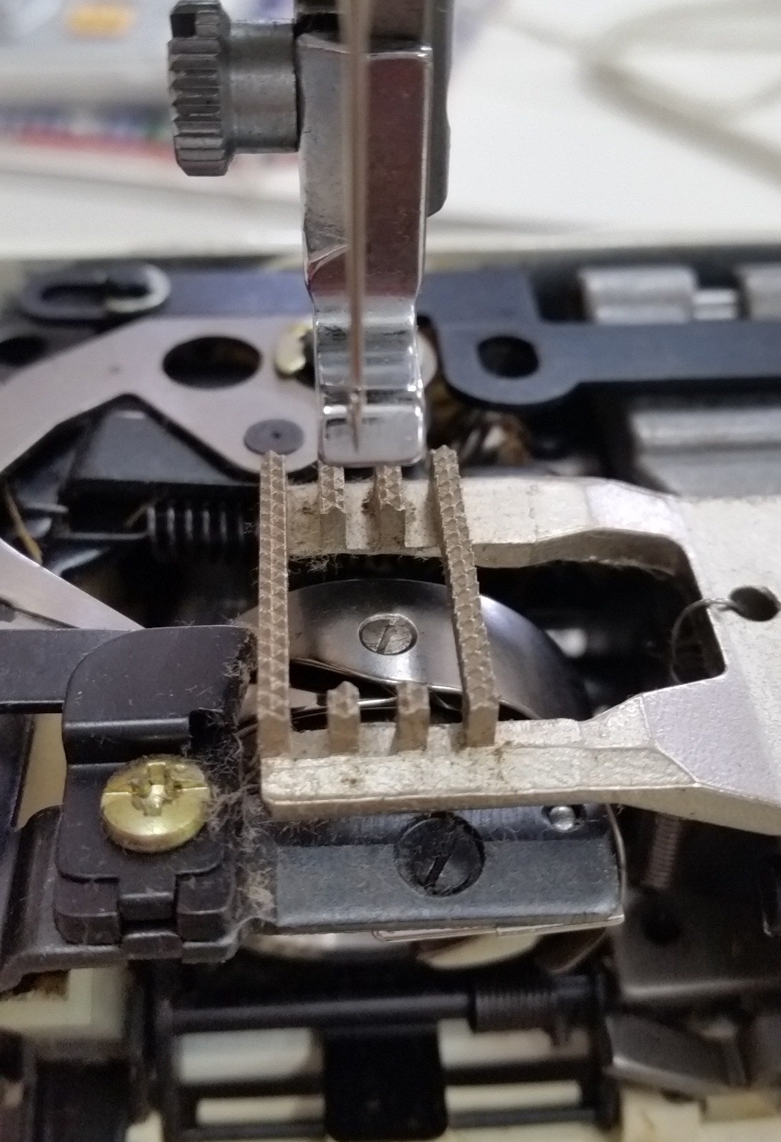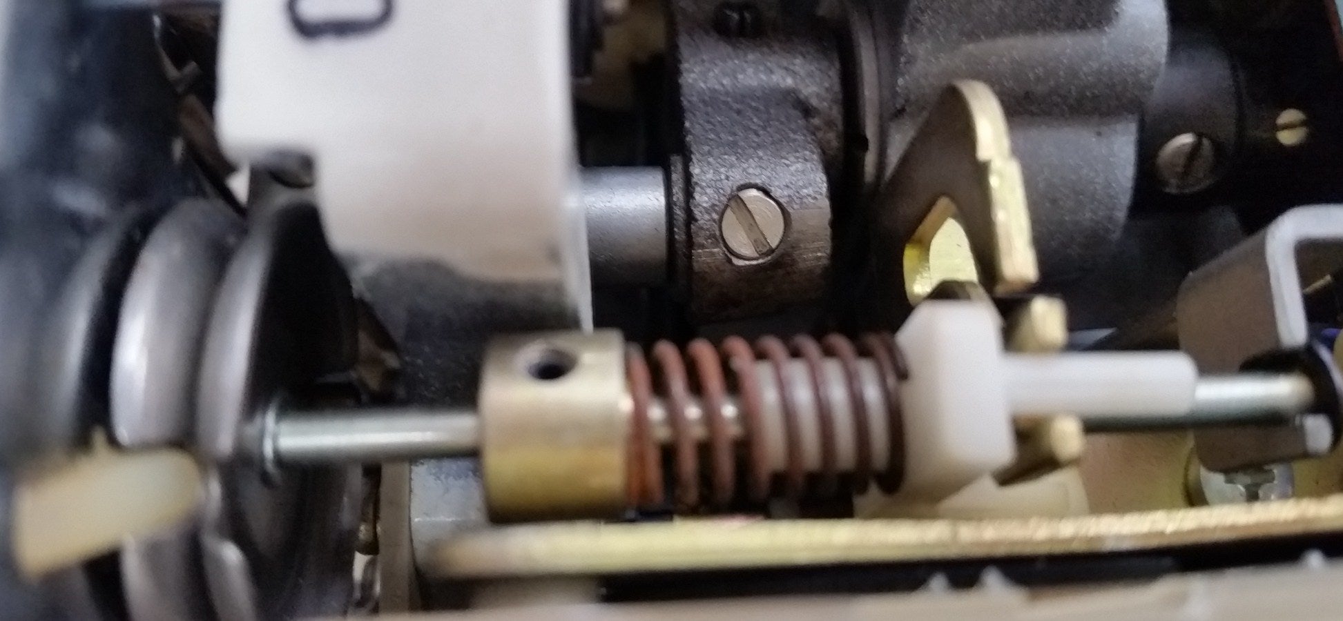 糸調子器の部品をばらして糸調子皿、バネなどの調整を