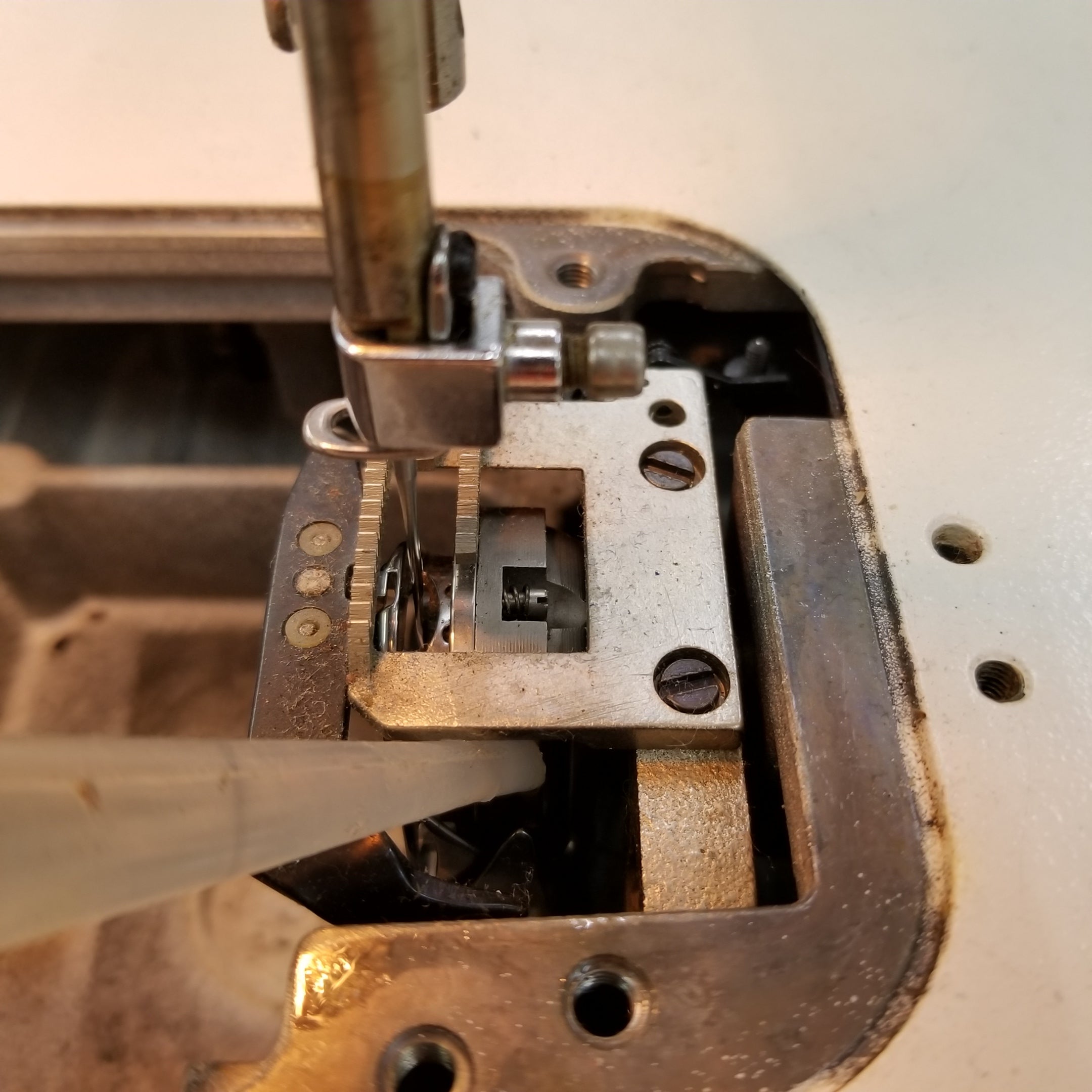 家庭用ミシンと違いスピードもパワーもあるので油はとても大事です。