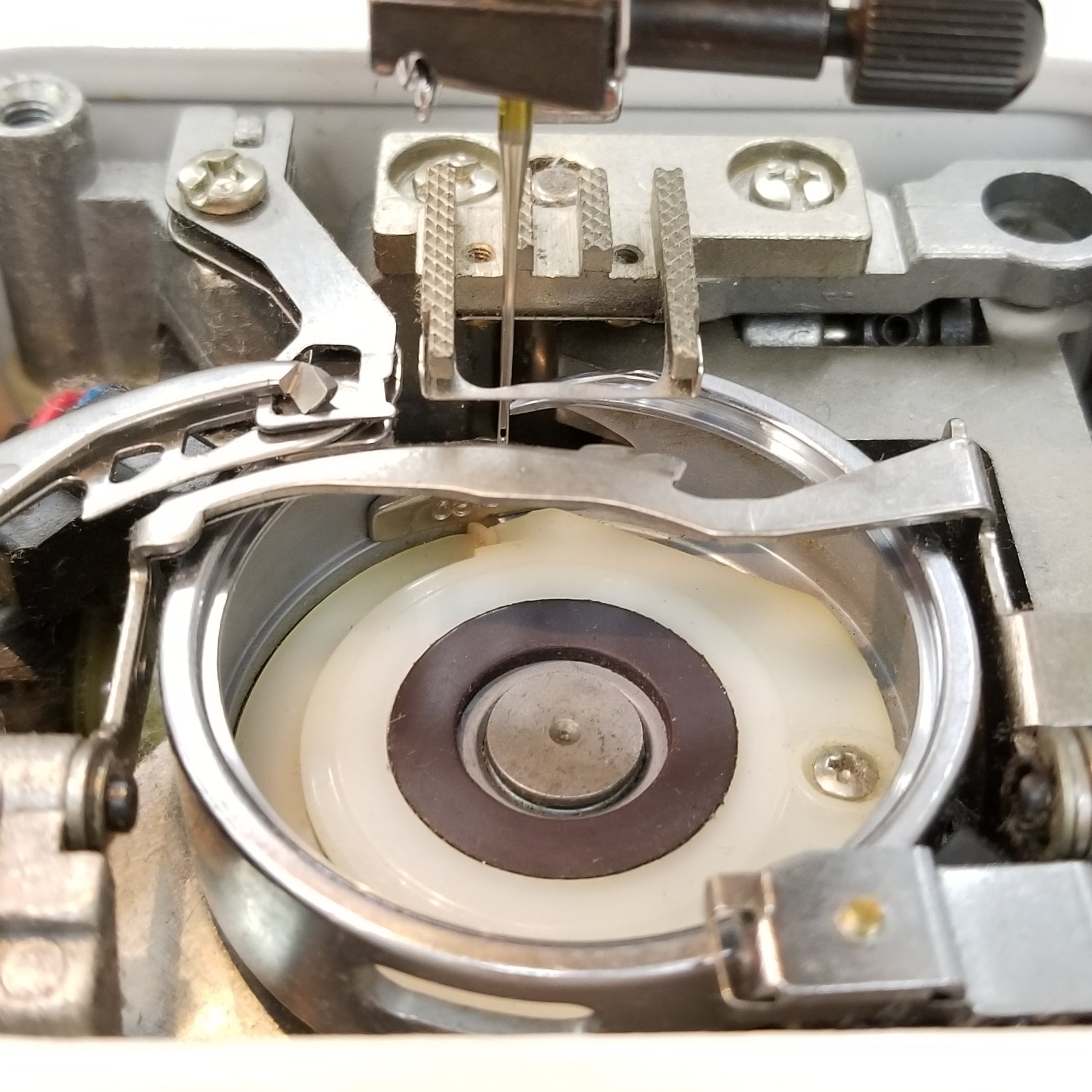 外釜にキズがあるのでキズの研磨をして針と釜のタイミング調整で