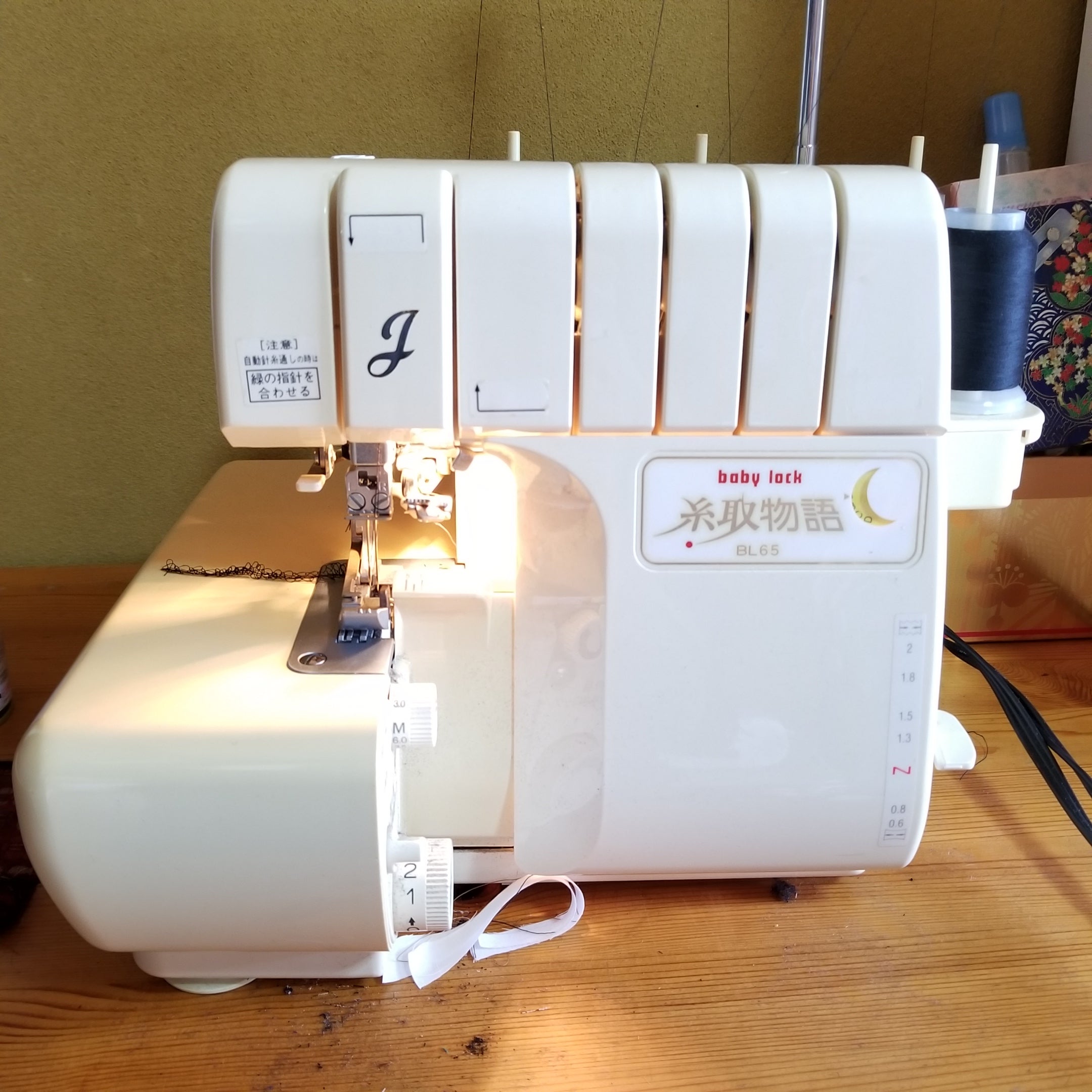 JUKI職業用ミシンとベビーロックの糸取物語の4本糸です。