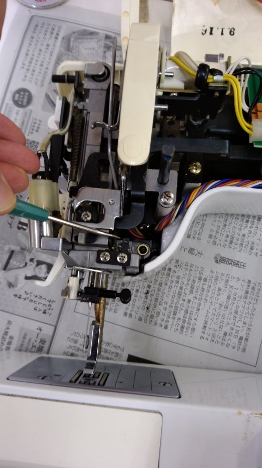 ミシンの内部の部品は、ある程度年数が経つと劣化していきます。ゴム、プラスチック、バネなどさまざまの所に使われていますので、いつまでも調子よく使うためには、年に一度はミシンのお医者さんで見てもらう事で防げますよ。