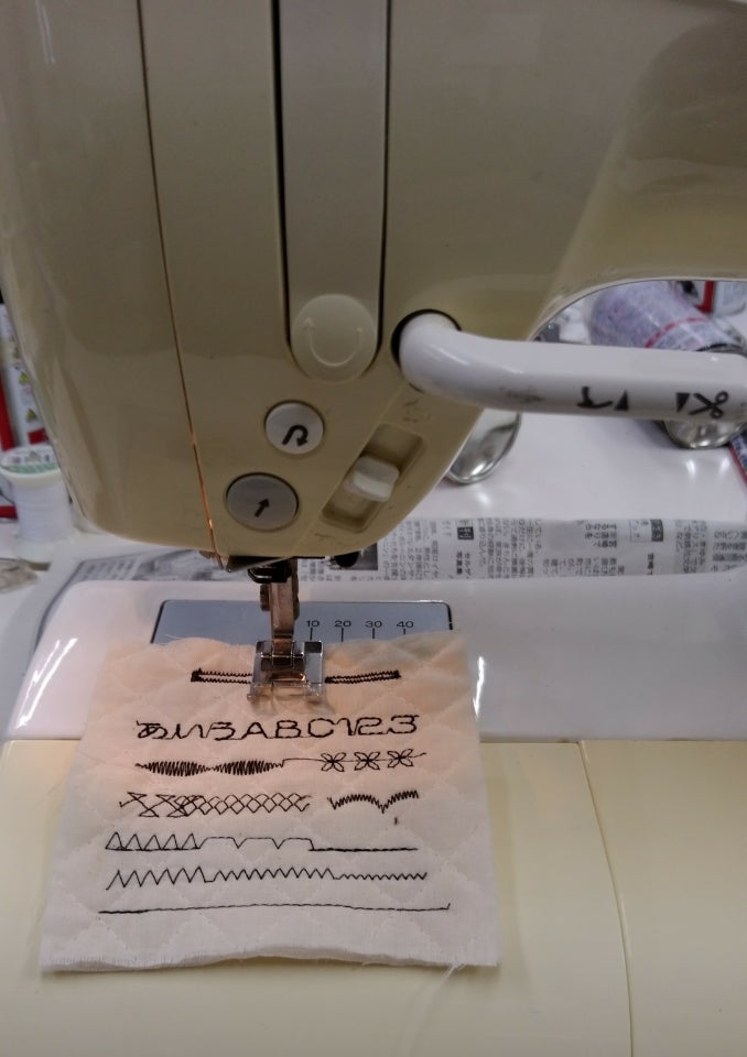 新しいストッパーのゴムに交換、ミシンを組み立て、再度模様、文字縫いを確認。正常に動くようになりました。