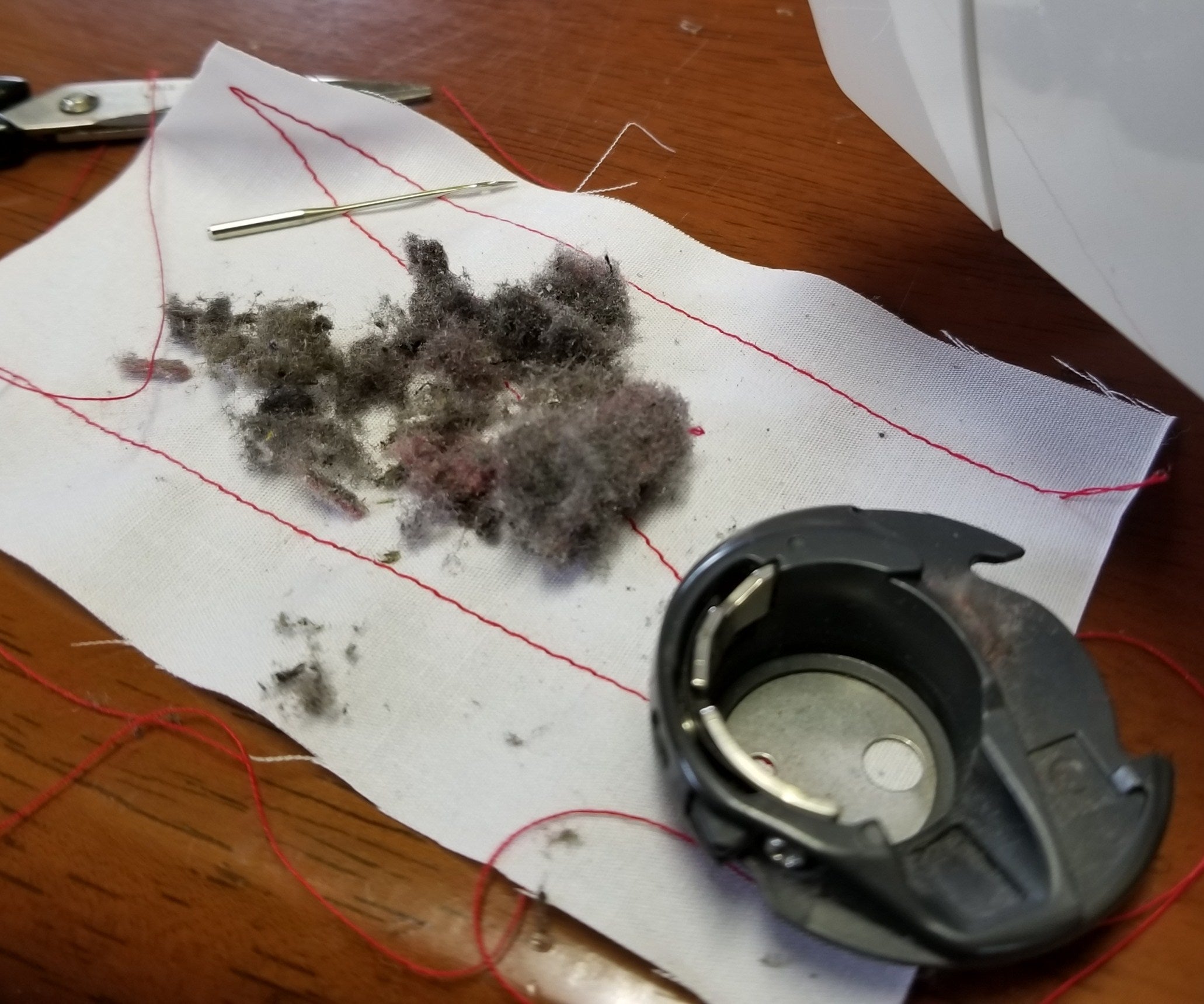 糸目の乱れの原因は糸くずやホコリ、針先のつぶれでした。
