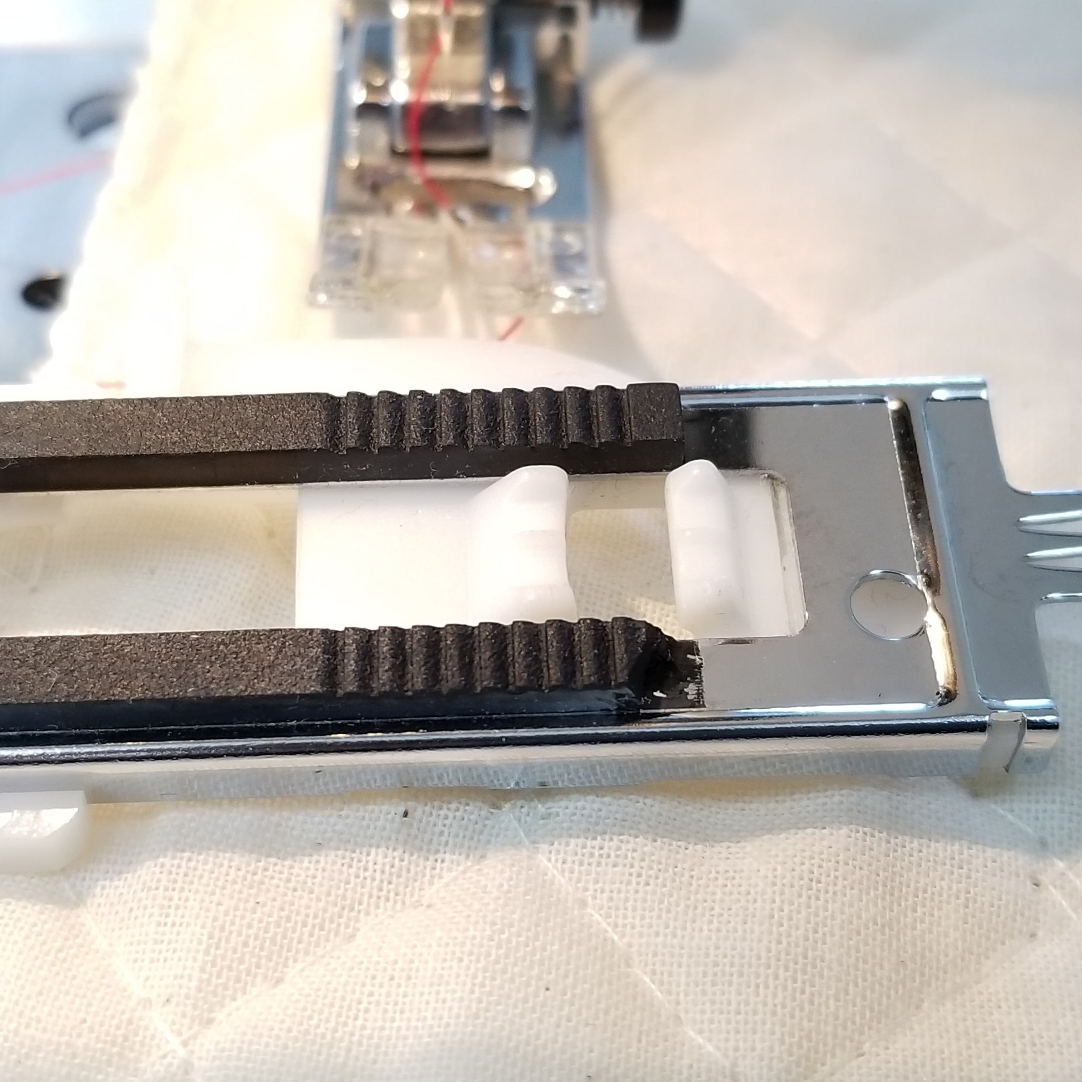 これが原因で生地をうまく送らずに縫えなかったようです。