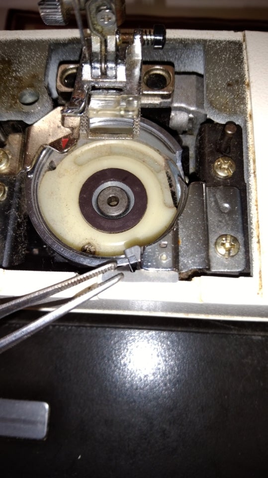 症状は、縫ってると内釜が動いて糸絡みする、音が高いということです。ガーン