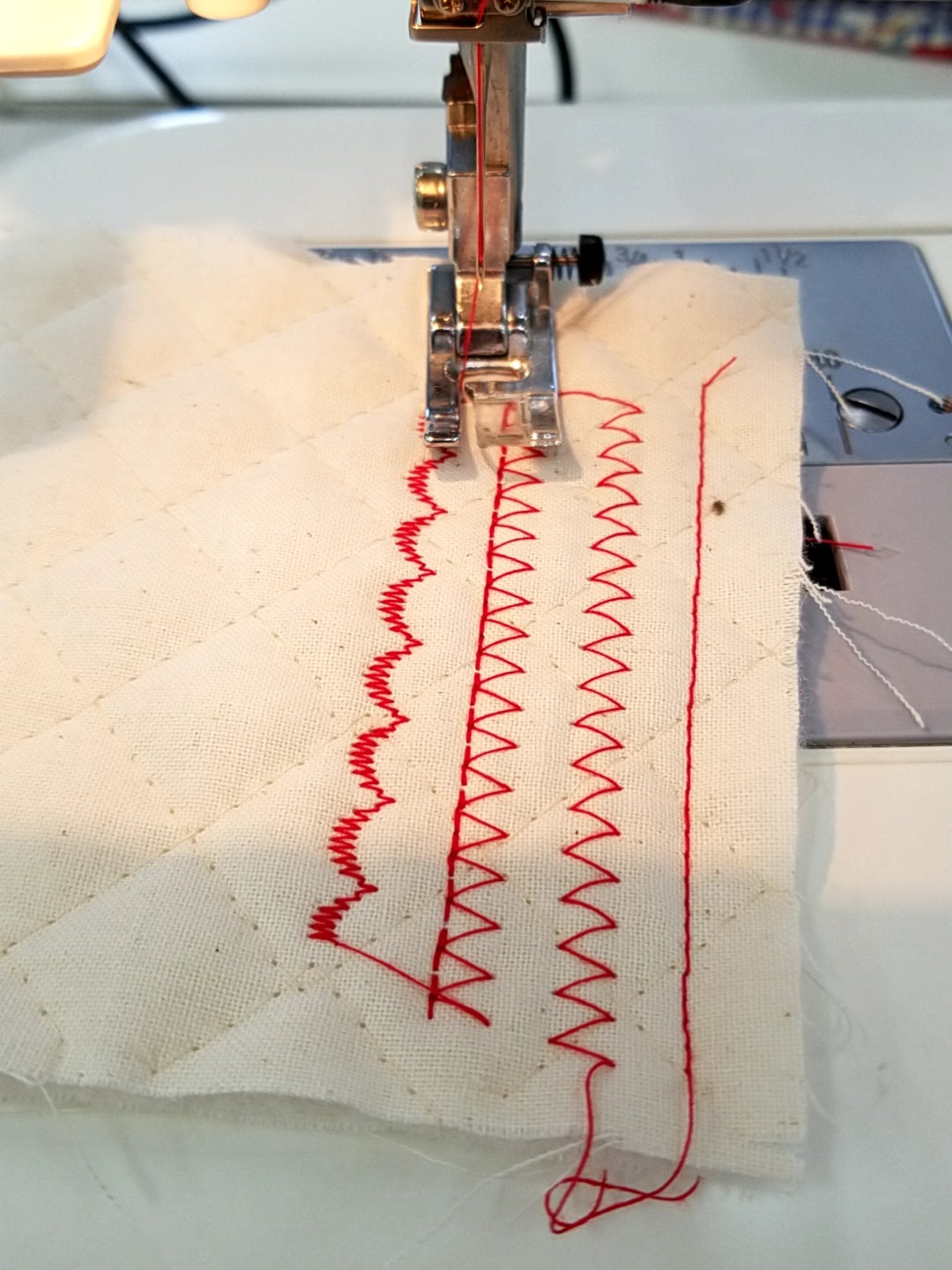 ジグザグを縫ったら針が横に振らずに直線になるようです。