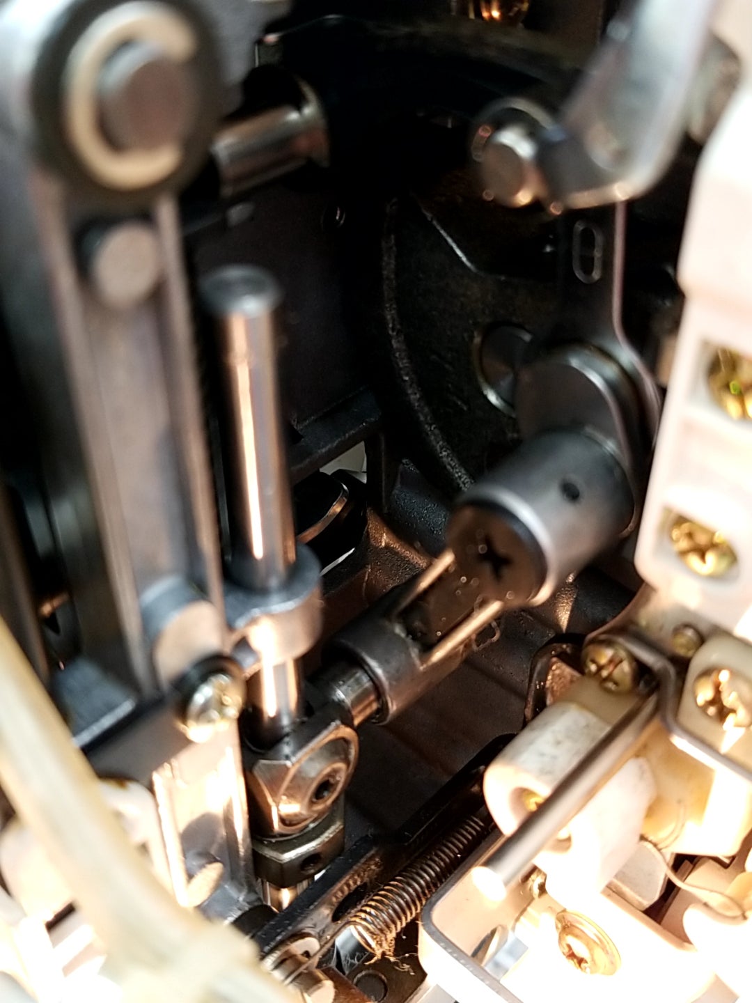 針棒揺動台を分解し注油し針棒が横にふるようになりました。