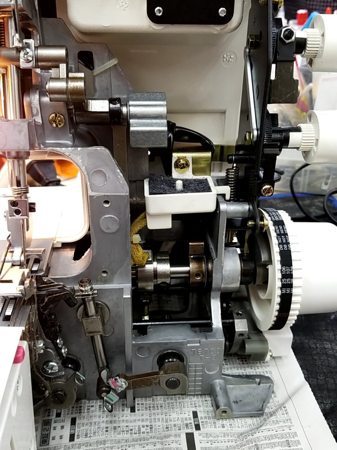 今日はジャノメのロックミシンの修理をしています。