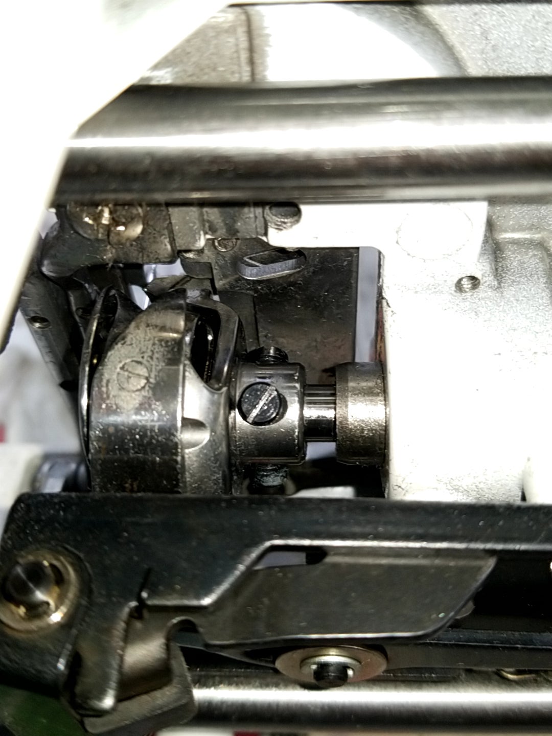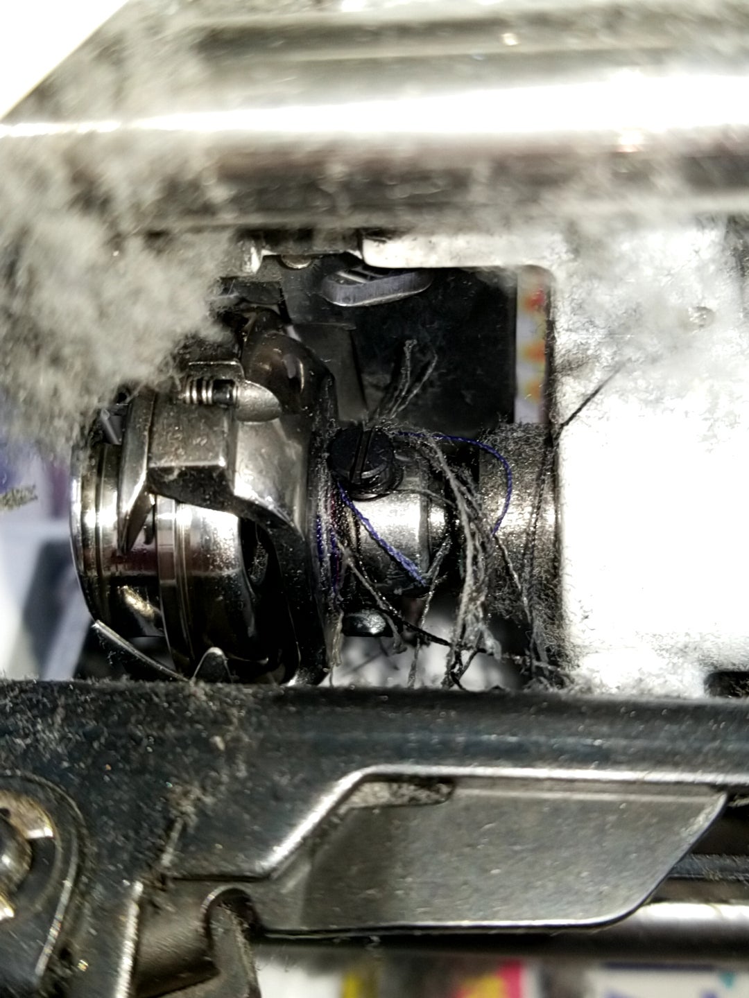 ホコリが送り歯や釜など糸道にもついています。