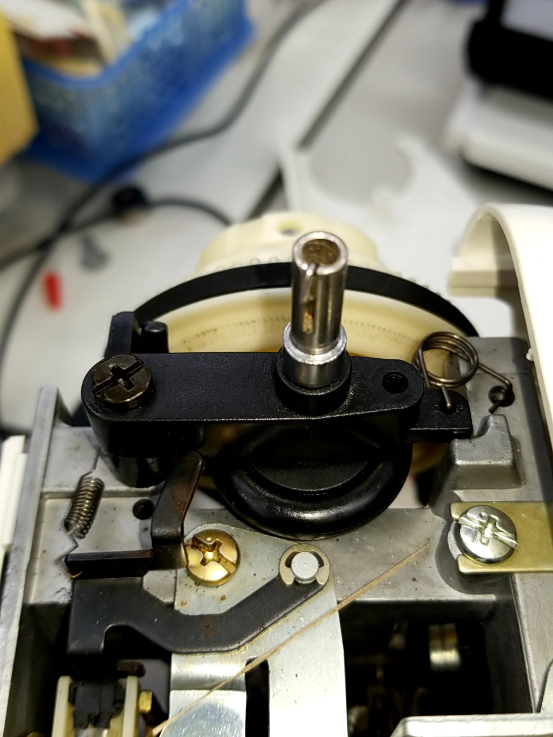 下糸巻軸もボビンを差し込む所がサビついて磨いても取れずに
