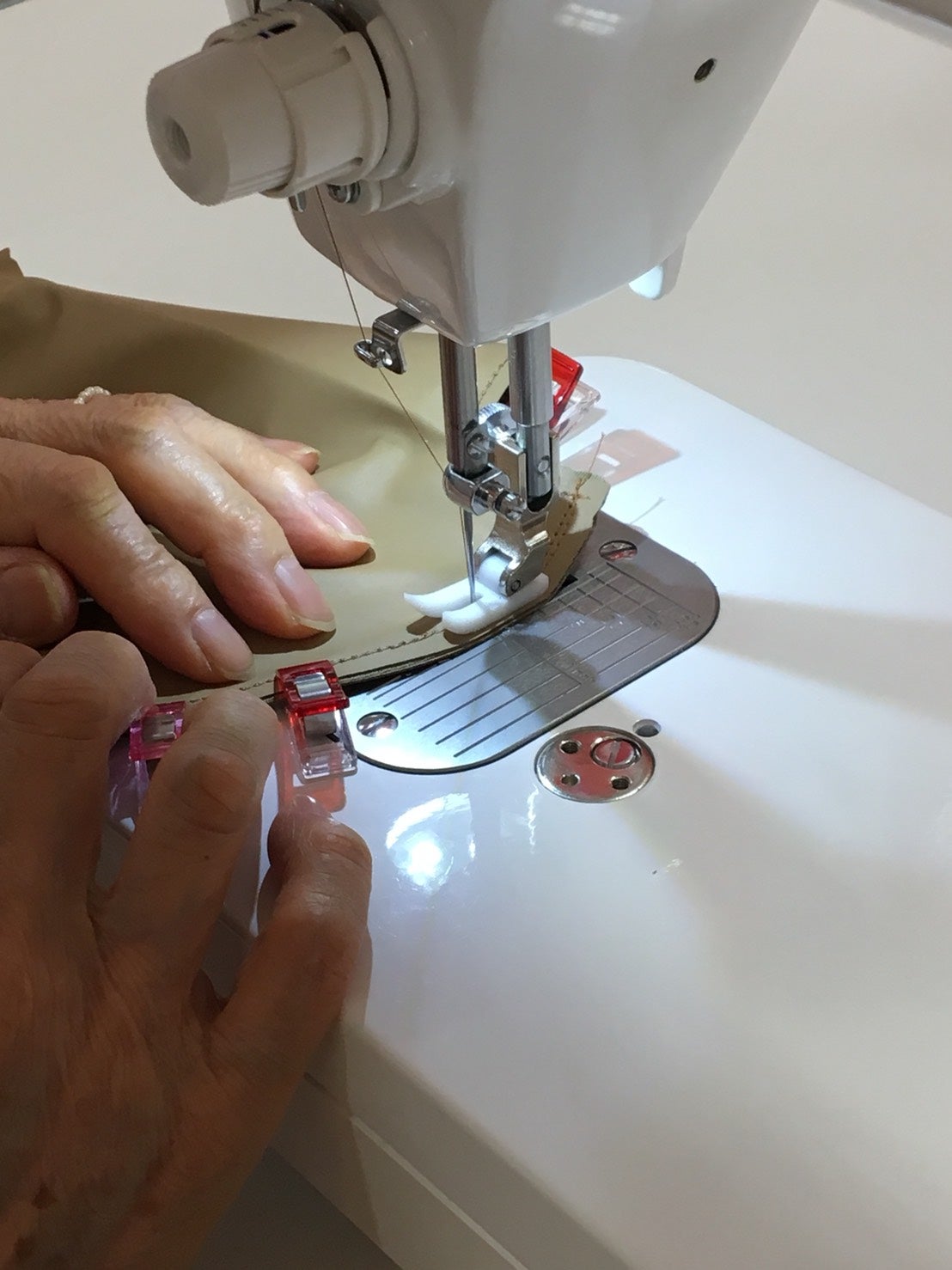 レザー専用の押さえでしっかりとなめらかです。