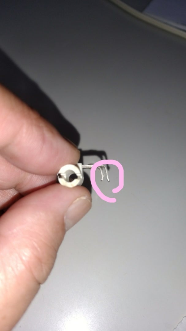 ピンセットと精密ドライバーを使い、曲がりを調整します。金具が曲がった原因は、取り付けてあった針、なんと使用出来ない薄地用の#9番が付いてました。えーん