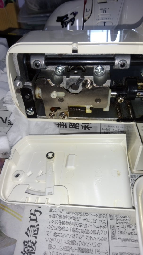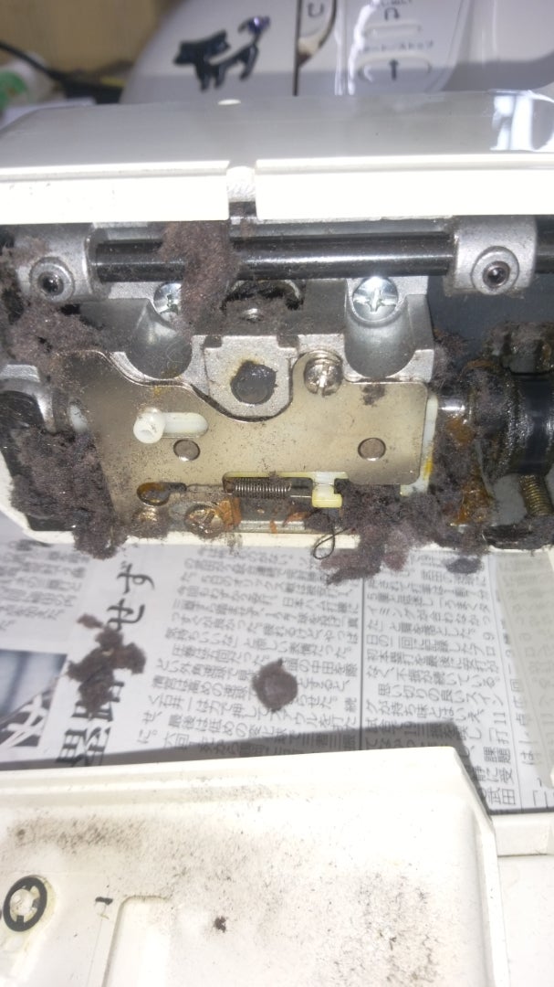 あとは、ミシンを分解して、縫いボコリを取るお手入れをします。(下の写真)