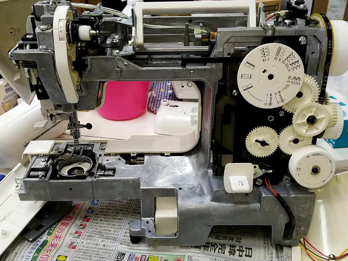 今日はジャノメミシンの修理をしています。