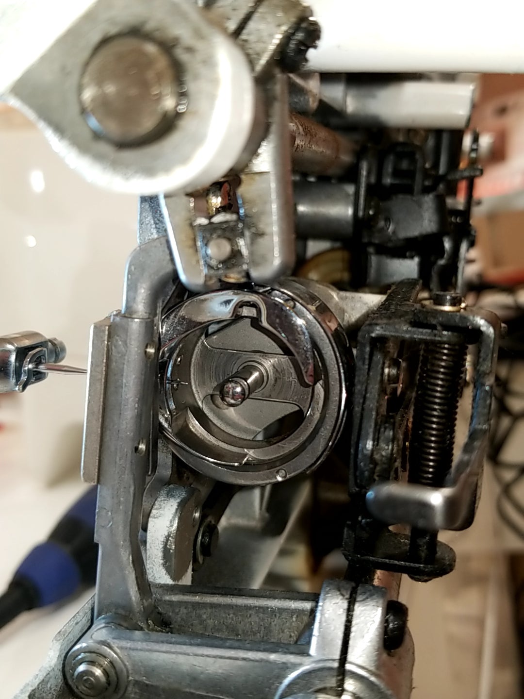 針など各部を点検し、原因は針と釜のタイミングがずれているのが原因です。