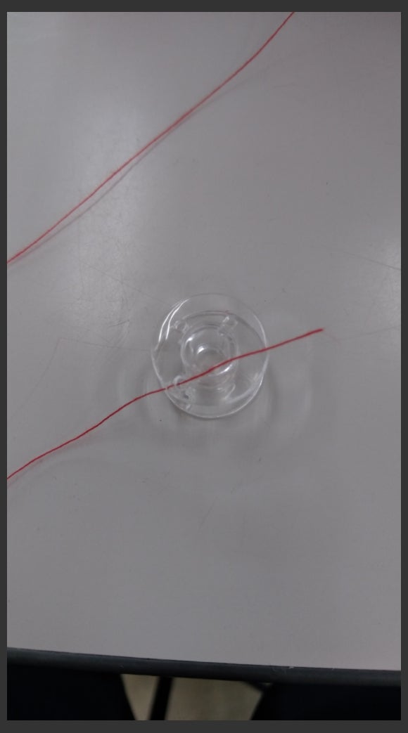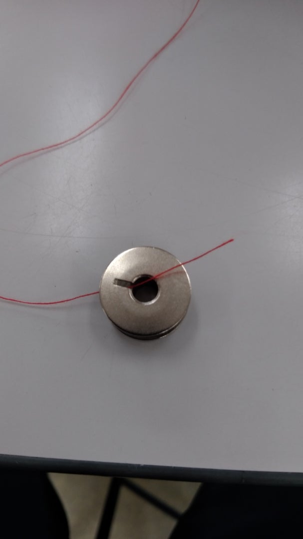 コツは、ボビンの穴に糸を内側から外に出すように通します。