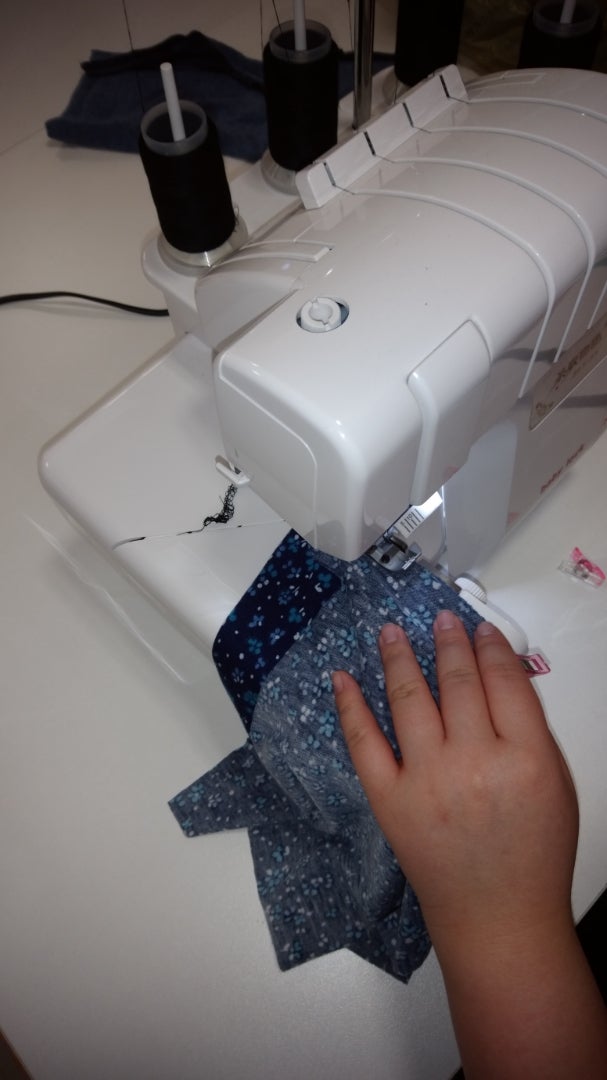 それぞれの布地をロックミシンで縫い付け作業している風景(下の写真)