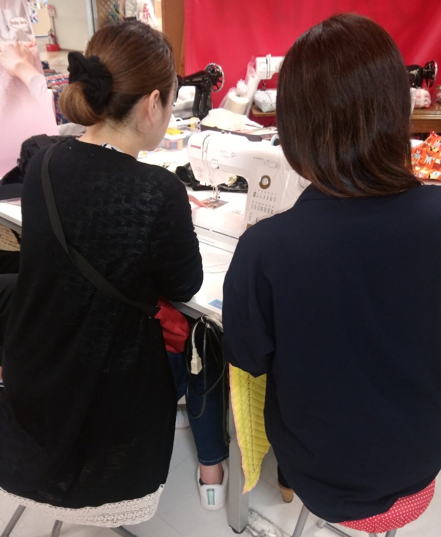 指導内容は、下糸巻きの操作,上糸かけの操作,直線縫い,ジグザグ縫いの基本操作を教えてお持ち帰り頂いております。