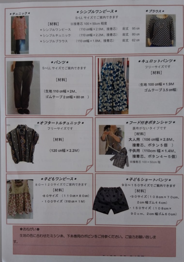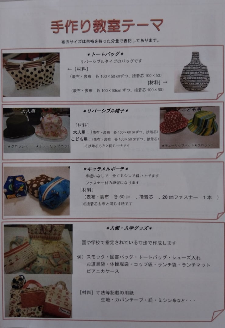 ミシン修理・販売 みしん市場 宮交シティ店 大感謝祭 手作り教室案内 手作り教室内容
