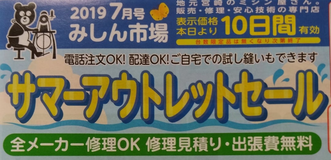 ミシン修理・販売 みしん市場 宮交シティ店 サマーアウトレットセール お買い上げプレゼント