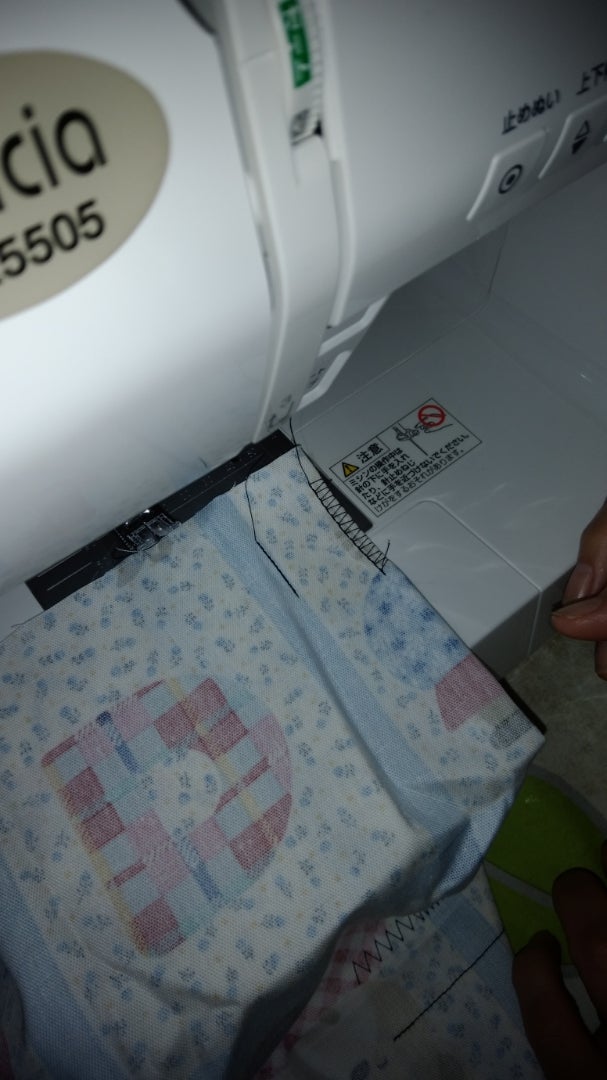 基本動作の『直線縫い』,『端かがりのジグザグ縫い』をお教えします。(下の写真)