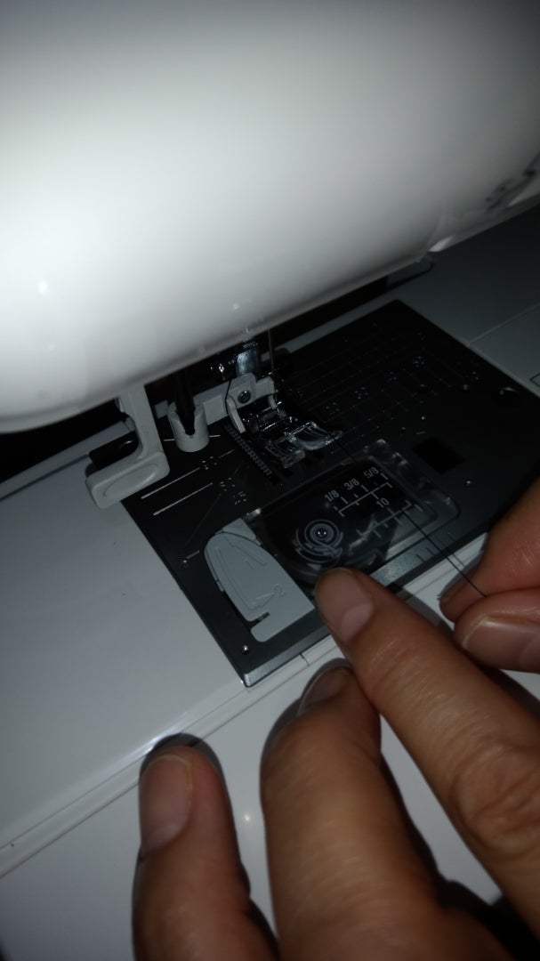 次に、巻き上がった下糸のセットの仕方をお教えします。(下の写真)