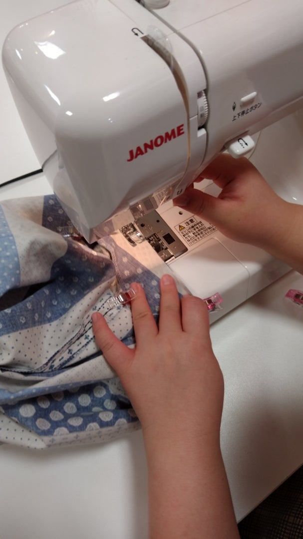 こちらは、首まわりを縫いつけるところです。(下の動画)