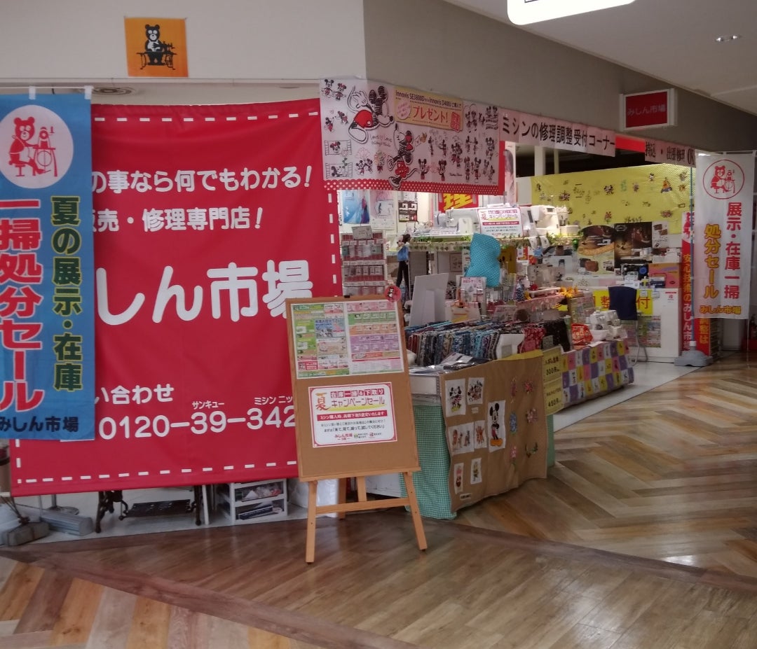 ミシン修理・販売 みしん市場 宮交シティ店 夏の在庫一斉処分 下取り 手作り教室 ロングワンピ