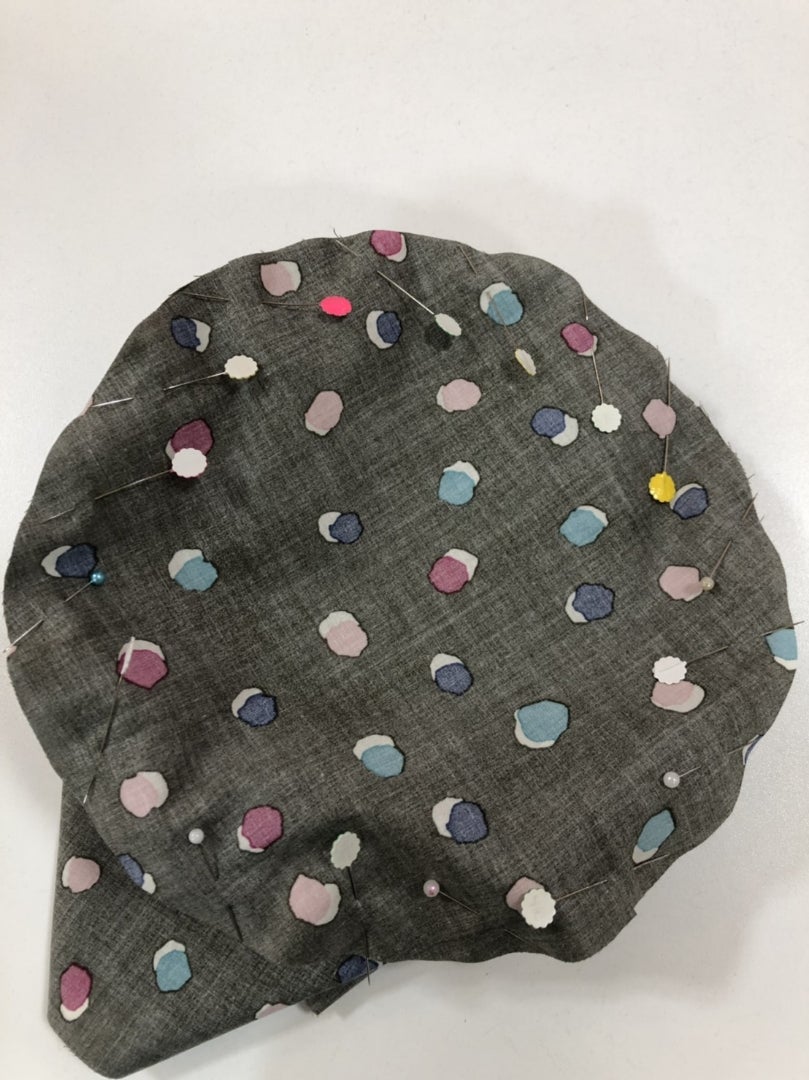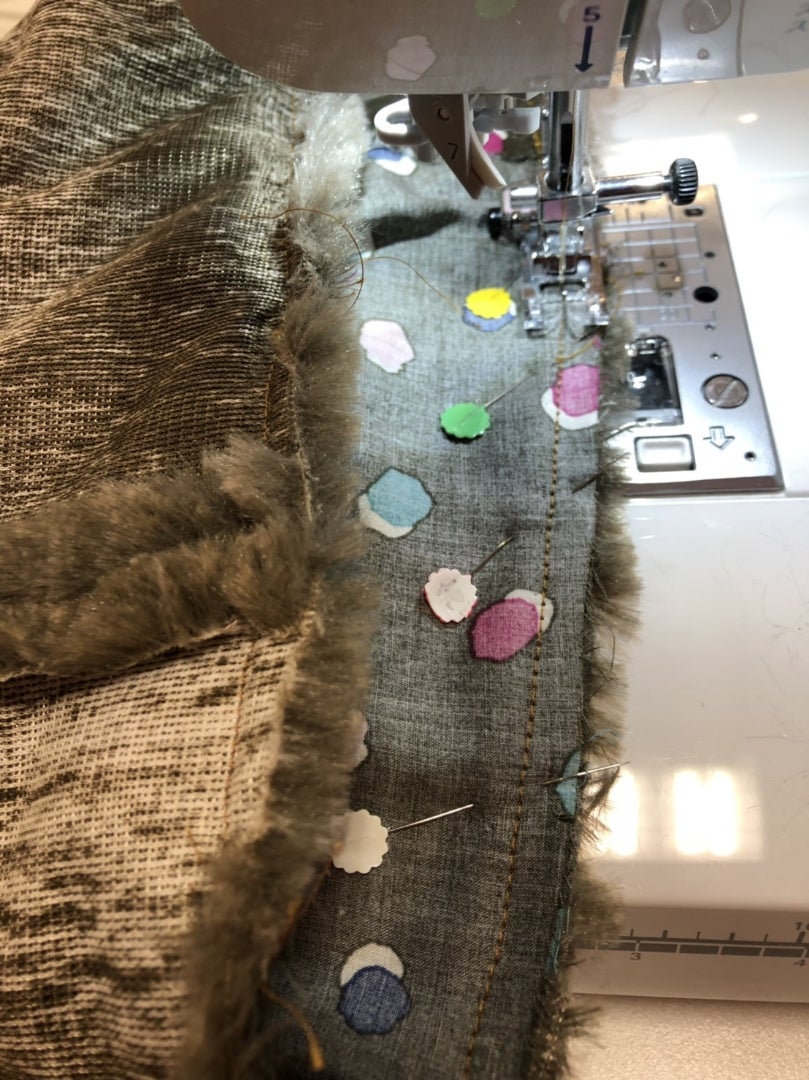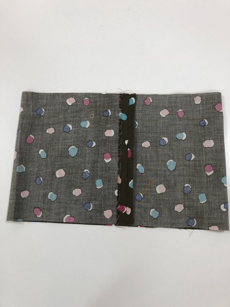 ⑥表バッグとひも通し口を中表に縫い合わせます。(下の写真)