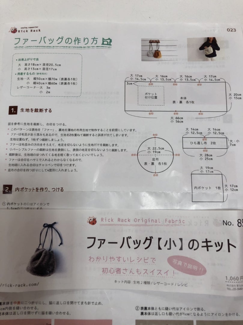ミシン修理・販売 みしん市場 宮交シティ店 増税前 大決算売り尽くし リックラック ファーバッグ