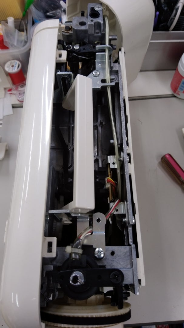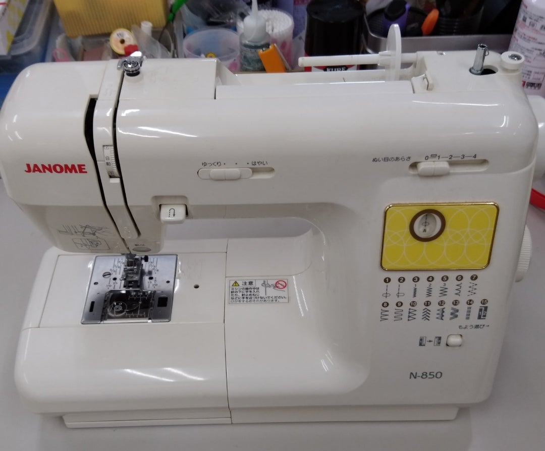 お客様で、ジャノメさんの『N850』という実用型自動ミシンです。御夫婦でご来店されました。