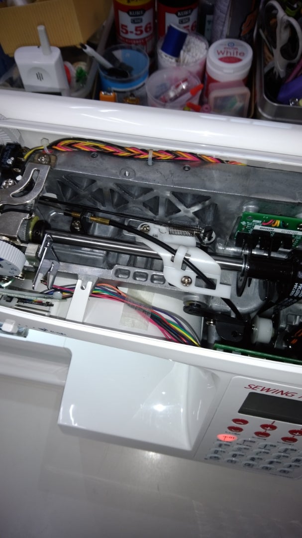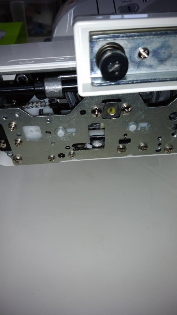 こちらは、ミシン上面部の状態を確認しているところです。(下の写真)