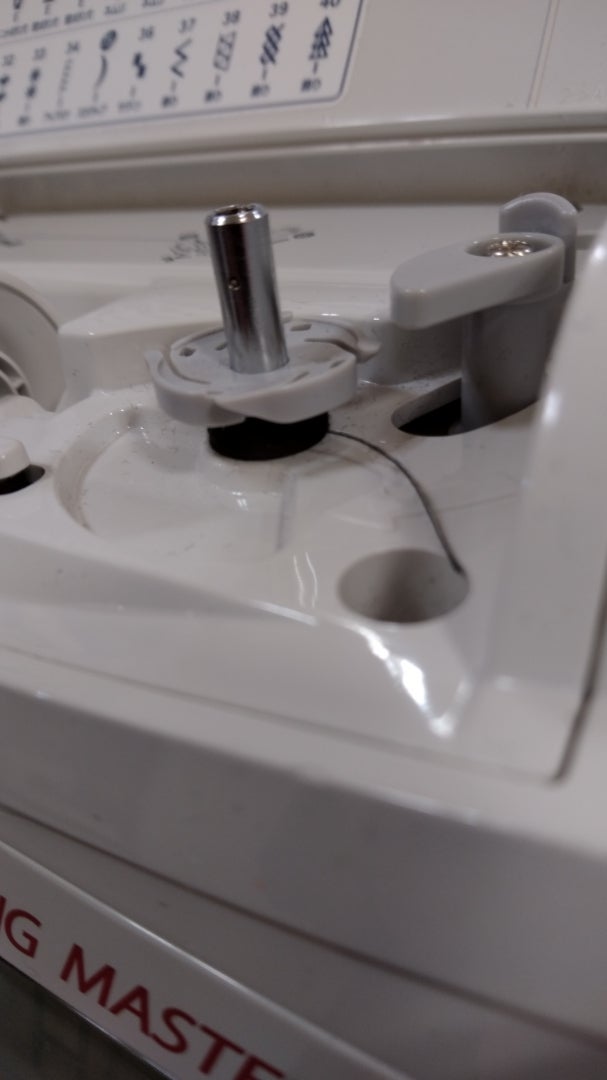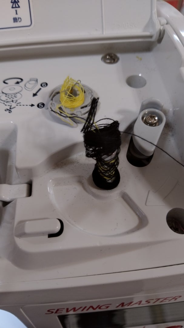 こちらは、下糸巻固定皿を外し、巻き付いた