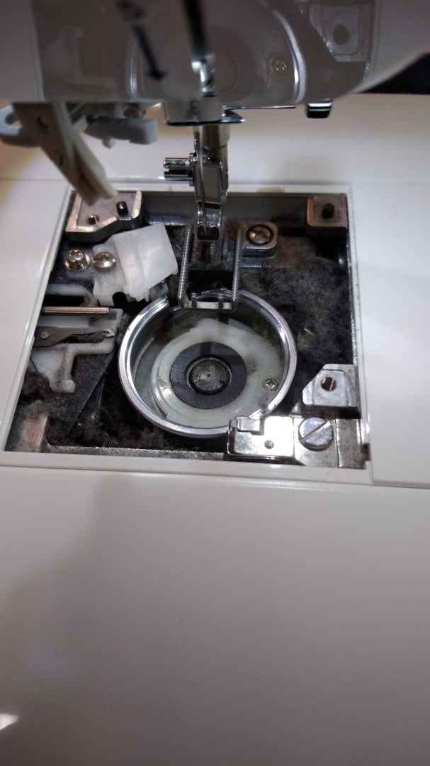 『2年ぶりに持って来ました。お掃除をお願いします。下糸巻のところに糸が、絡んでるので、取って下さい。』との事です。びっくり