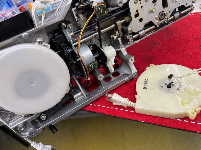 お客様からのお預かりミシン JUKIのFシリーズのコードリール交換しています