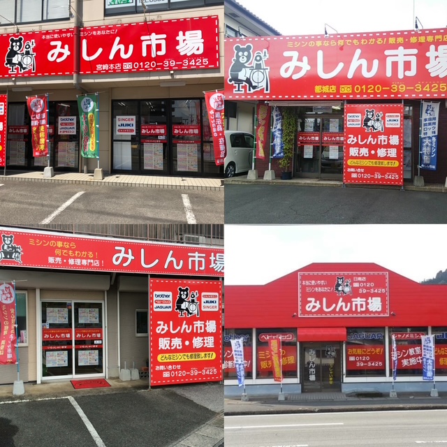 ミシンの修理販売業を県内4店舗展開しております。宮崎店 都城店 延岡店 日南店とあります。各店修理技術者を配置し日々頑張っております。